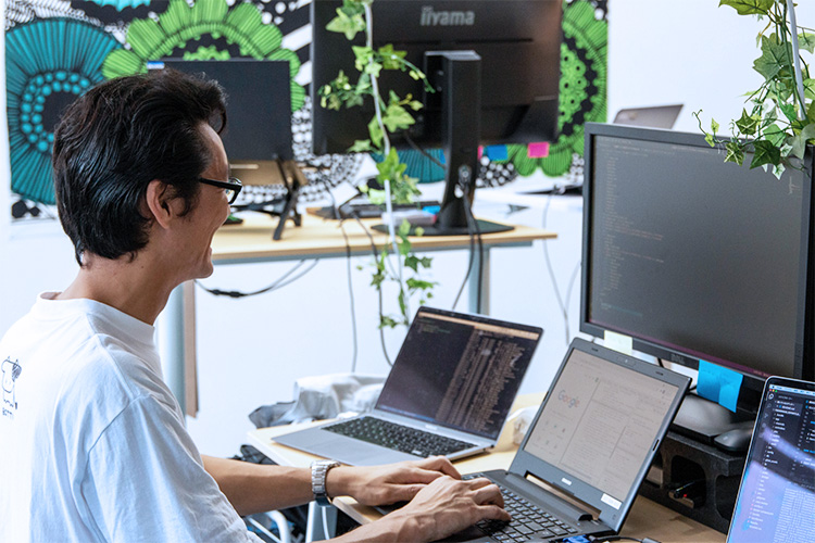 分からないことは自分で調べたり、メンバーに確認したりしながら、開発を進めます。