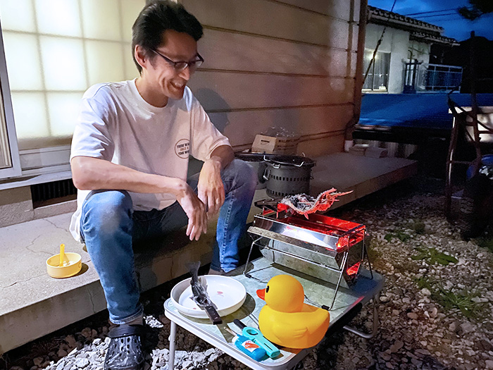 各拠点のメンバーが支社に遊びに来ることもあります。自分達が育てたイワナを七輪で焼いて皆に振る舞いながら飲んだりすることも...!